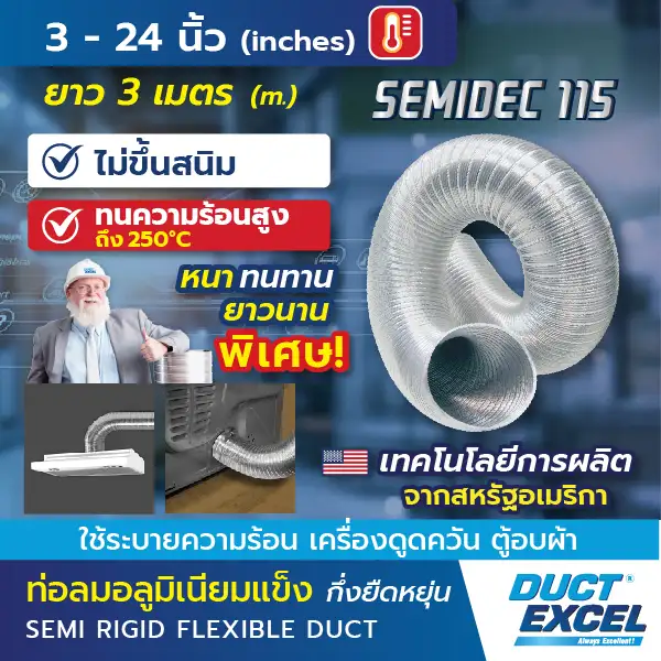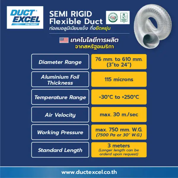 Semi Rigid Flexible Ducts are made from aluminum sheets and can be bent as needed without deforming. They are exceptionally durable in various environments, and resistant to weather conditions and chemical vapors. Suitable for all types of ventilation work, they are easy and quick to install.