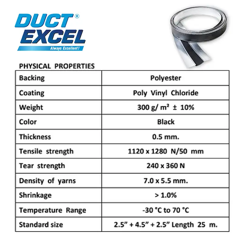 • Ideal for air duct systems, exhaust ducts, and fresh air ducts. Specifically designed to prevent air leakage and effectively reduce vibrations from blowers or fans to the ductwork.