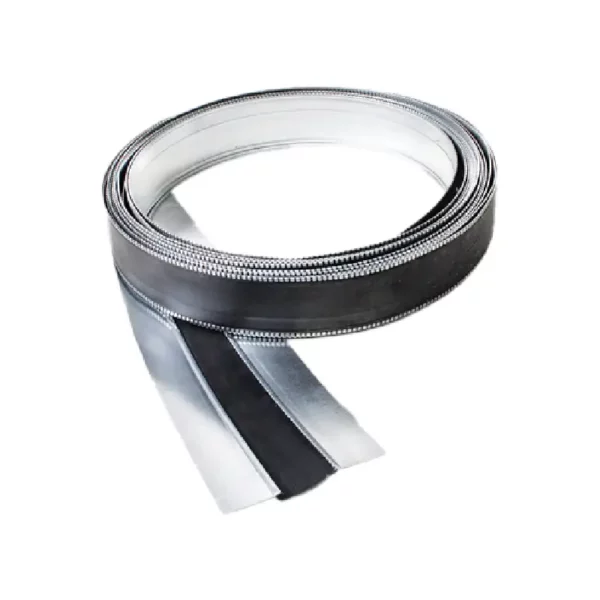 Made from polyester fabric coated with PVC on both sides, with a width of 4.5 inches. The fabric edges are attached to 0.5 mm thick galvanized steel strips, each 2.5 inches wide, using a tightly pressed folded seam technique, which enhances durability and resistance to pulling forces.