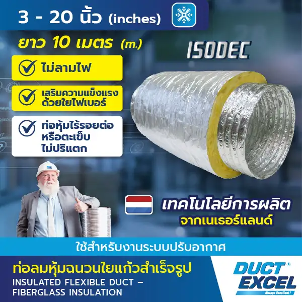 ท่อลมหุ้มฉนวนใยแก้วสำเร็จรูป – ISODEC